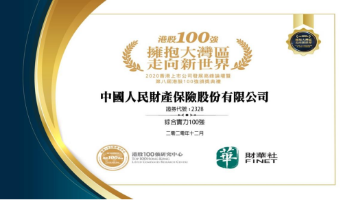 2020年12月21日,第八届「港股100强」榜单揭晓,公司连续第八年荣登「港股100强」“综合实力100强”主榜榜单,排名第31位,较2018年度排名提升17个位次,体现了香港资本市场对公司经营业绩和投资价值的充分肯定。