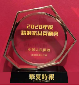 2020年11月12日,人民日报社、中国银行业协会、中国保险业协会、国家金融与发展实验室、中国银行保险报联合发布“中国普惠金融典型案例(2020)”,公司“‘保险+’扶贫模式让脱贫致富更‘保险’”案例,荣获“中国普惠金融助力脱贫攻坚典型案例”奖。