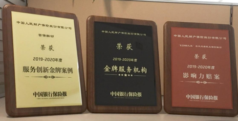 2020年6月,在《中国银行保险报》主办的“2020中国保险服务创新峰会”上,公司荣获“2019-2020年度金牌服务机构”。另外,公司警保联动获评“2019-2020年度服务创新金牌案例”,“819温比亚台风灾害民生保险赔付”获评“2019-2020年度影响力赔案”。