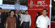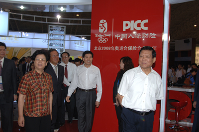 中共中央政治局委员、北京市委书记、北京奥组委主席刘淇,国务委员、北京奥组委第一副主席陈至立在中国人保财险郭生臣副总裁的陪同下来到该公司展台