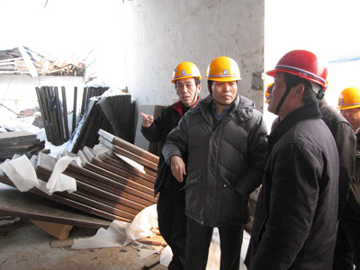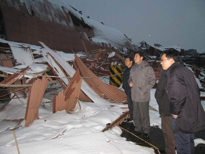 郭生臣副总裁在武汉可口可乐公司察看被暴雪压塌的库房