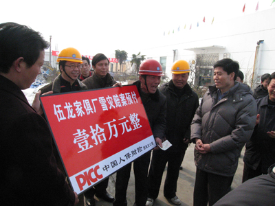 郭生臣副总裁一行一下飞机就赶赴遭受重大损失的华中电网有限公司。在详细了解了该公司投保情况以及此次受灾情况后,郭生臣副总裁代表中国人保向华中电网长期以来给予我公司的支持表示感谢,同时对华中电网遭受重大雪灾损失表示慰问。随后,郭生臣副总裁亲自将预付赔款500万元交到华中电网陈晓伦副总经理手中,并要求湖北省分公司继续做好下一步的理赔工作,尽全力帮助华中电网尽快全面恢复运营。此后,郭生臣副总裁又马不停蹄地赶往武汉可口可乐公司察看被暴雪压塌的库房,认真询问了受灾和理赔情况,并与客户进行了友好沟通,可口可乐公司对中国人保财险快速、优质的理赔服务表示满意和感谢。