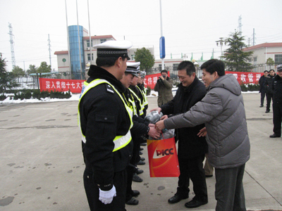 郭总还亲自分赴黄冈市东门街路口、大桥收费站口等地慰问坚守在执勤岗位的交通民警,给他们送去了围巾、棉手套等防寒保暖衣物。