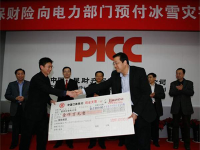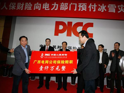 2008年2月21日下午四点半,“中国人保财险向电力部门预付冰雪灾害赔款仪式”在中国人保财险广西分公司隆重举行。中国人民保险集团公司副总裁、中国人保财险总裁王毅出席仪式并亲自向南方电网广西电网公司、南方电网超高压输电公司各预付赔款1000万元,这是至今为止广西保险业向受灾企业赔付的最大一笔保险赔款。至此,中国人保财险向电力系统支付赔款已达2.35亿元。