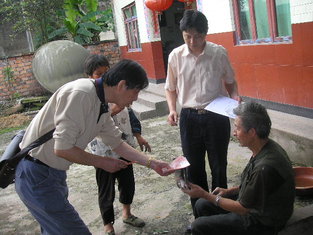 雅安分公司副总经理刘顺同志查勘后当场将赔款送到灾民手中