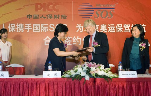 2008年7月7日,在北京奥运新闻中心新闻发布厅中,2008年北京奥运会合作伙伴中国人保财险与全球最大的医疗救援组织国际SOS共同签署了合作协议,正式启动了奥运保险保障计划。此计划旨在北京奥运会期间为北京奥运会奥林匹克大家庭、第13届残疾人奥运会残奥会大家庭及外籍志愿者提供医疗救援服务。