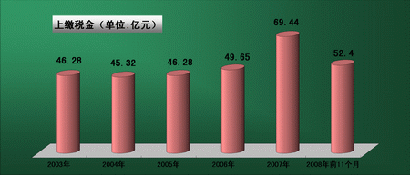 2003年至2008年11月,公司共上缴税金达309.37亿元