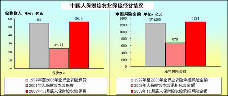 特别是去年以来,在国家强农惠农政策引导支持下,中国人保财险认真贯彻落实中央一号文件精神,把发展农村保险作为关注民生、履行社会责任、服务“三农”的重大战略举措,积极投身发展农村保险事业,逐步建立健全了面向农村的保险服务体系,基本实现了中国人保财险产品、服务和人员的“三下乡”,在服务和谐社会和新农村建设上进行了富有成效的实践和探索。2007年至今,中国人保财险农业保险保费达到82.66亿元,累计承担种、养两业风险责任1969.17亿元。其中,累计承保生猪8572万头次,能繁母猪5774万头次,占全国能繁母猪承保总数的85%以上,基本实现了“应保尽保”;种植业保险承保面积4.17亿亩,占全国耕地面积近六分之一,承担风险责任1119.82亿元。政策性农房保险扩展到11个省级分公司,投保农户3132万户,承担风险责任3000多亿元。