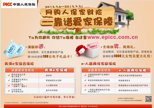 “三月推出的‘爱家月大促’活动主要是以家财险为核心,从消费者关怀及客户需求方面推出的”人保财险官网负责人介绍到。