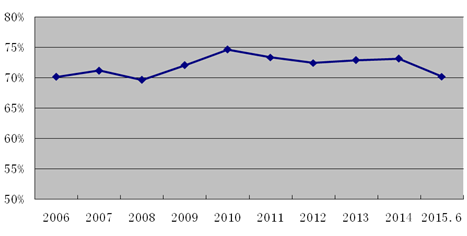 1、市场增速回落明显。截至2015年6月,全行业实现车险保费收入2995.56亿元,同比增长11.75%,较2014年下降5.09个百分点,增速下降较为明显,为近10年的最低增速。