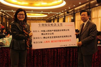 2014年1月14日,在禅城区经济和科技促进局举办的“首宗专利保险赔款支付仪式”上,佛山市玉玄宫科技开发有限公司负责人从中国人民财产保险股份有限公司佛山分公司手中,接过了金额为82173.10元的支票。